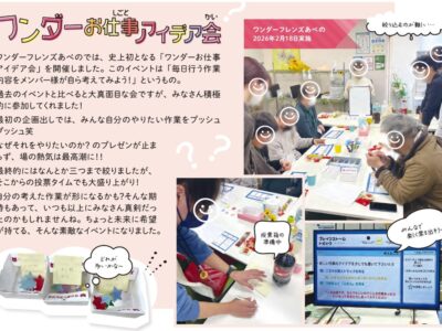 ワンダーフレンズ』では、わくわく働ける「楽しい仲間×活動場所」を大切に以下のつ3つのことを大切に運営を行っています。