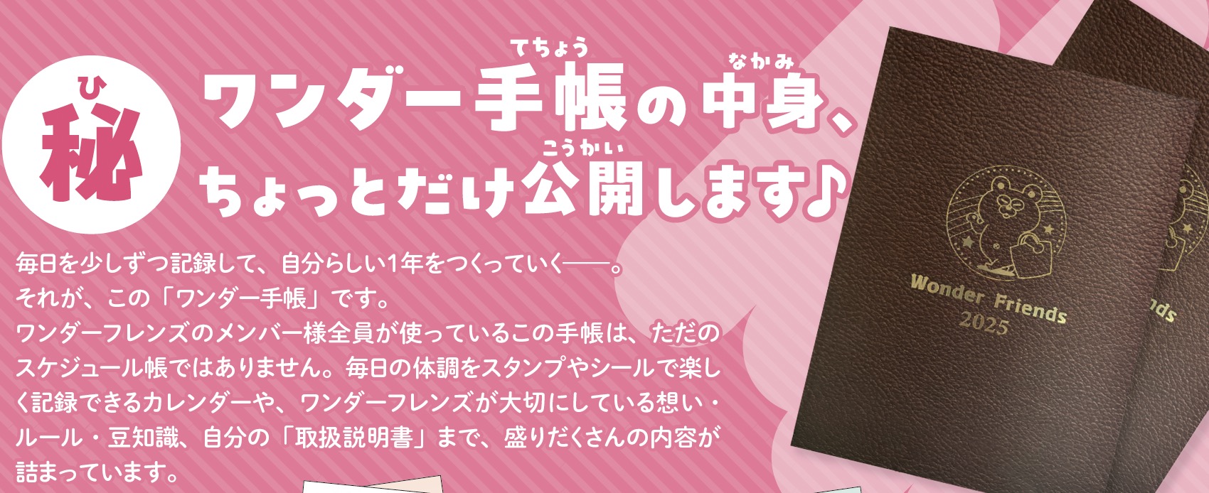 ワンダーフレンズのメンバー様全員が使っているこの手帳は、ただのスケジュール帳ではありません。
