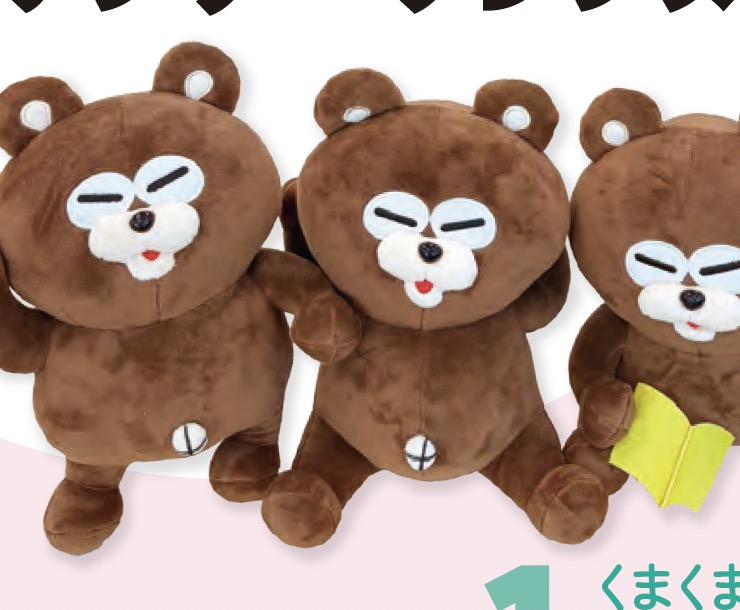 表情豊かな3ポーズが勢ぞろい!ReSowの人気キャラ「くまくま社長」が、ぬいぐるみに なって登場♪事業所に飾ってあるので、ぜひ探してみてね!